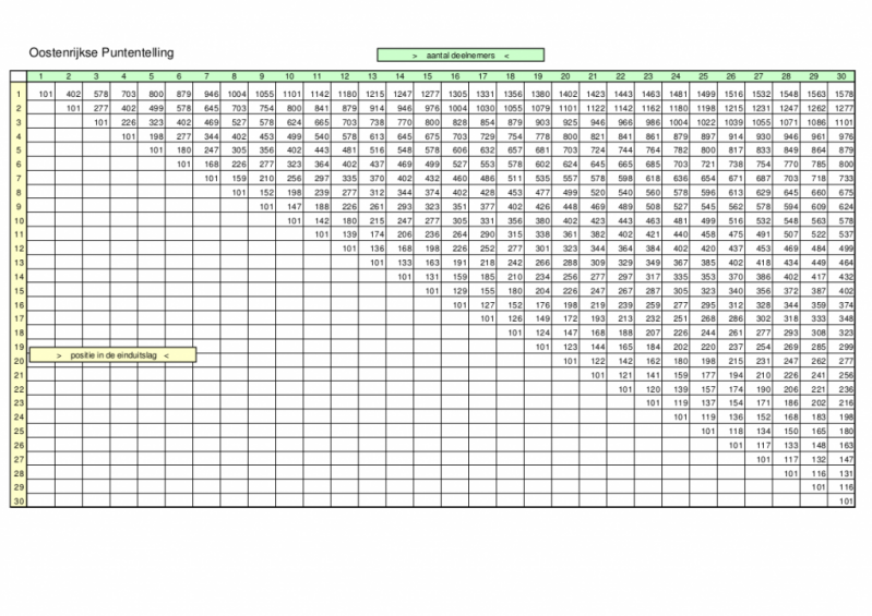 Daarna de Oostenrijkse uitslag punten aantal met de hand invullen op het totaal blad.